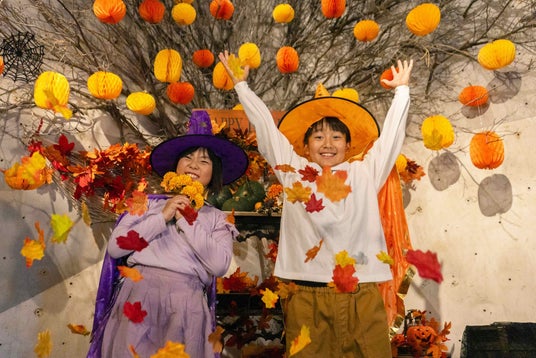 本物の木の枝を使用したシンボルツリーと、かぼちゃの装飾がされたフォトスポットが登場。無料貸し出しの仮装グッズを使って、ハロウィンならではの写真を撮ることができます。