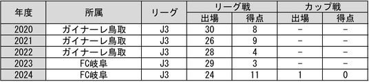 大山田サッカースポーツ少年団 - セレッソ大阪西U-15 - 四日市中央工高 - ガイナーレ鳥取 - FC岐阜