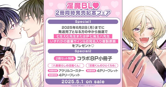 株式会社TORICO(本社:東京都千代田区、代表取締役社長:安藤拓郎)が運営するホーリンラブブックスにて、淫魔BL(ハート)2冊同時発売記念フェアを開催いたします。