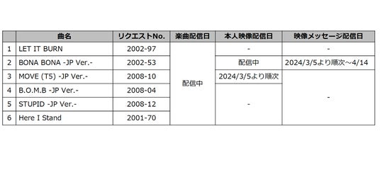 通信カラオケDAMでは、アルバム収録曲「MOVE (T5) -JP Ver.-」の本人映像を配信するほか、「BONA BONA -JP Ver.-」の本人映像歌唱後にアーティストからの映像メッセージが期間限定で視聴できます。