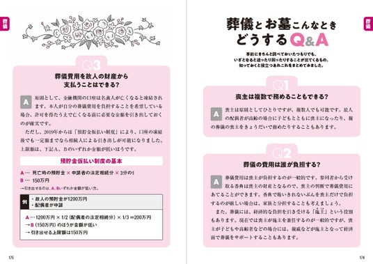 「葬儀の費用を個人の財産から支払うことはできる?」「配偶者の家のお墓には入りたくない! どんな選択肢がある?」「夫婦がそれぞれが承継したお墓をひとつにまとめることはできる?」「自分の土地に散骨してもいい?」など、知っておくと役立つあれこれを巻末にQ&Aとしてまとめました。また、おひとりさまの葬儀とお墓についてもしっかり紹介しています。