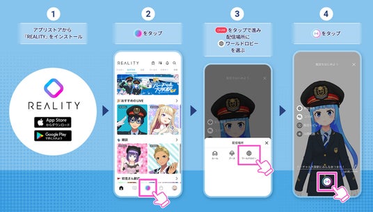 利用されるスマートフォンへアプリ「REALITY」のインストールと無料アカウント(アバター)作成が必要です。