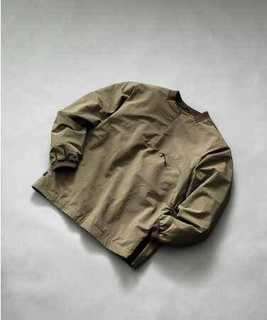 左脇にもZIPを設けて着脱時のしやすさを助けると同時にベンチレーションとしての役割も兼ね備えた仕様。袖口、後ろ裾には別布のジャージ素材を使用することにより余計な外気の侵入を防いでいます。