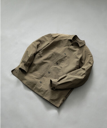 独特な肌触りとしっとりとした質感の素材。ボタンはマットなラバーコーティングボタンを使用。小ぶりなサイズなので止めやすくシンプルな表情をキープしています。腕周りは袖の可動域を確保したラグランスリーブ仕様。カフスにはアジャスト用のボタンでサイズ調整可能。ネックにはEKALオリジナルのミックスコード、グログランテープをネックラインに流し込んで細部までこだわった仕様になっています。