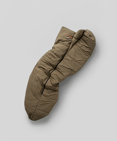 1人用でドラフトチューブがあり、ファスナーサイドからの冷気の侵入を防ぎます。上面には保温性が高く軽いダウン、体重によって潰れてしまう下綿には化繊綿(シングルキルト構造)と合理的な構造となっています。