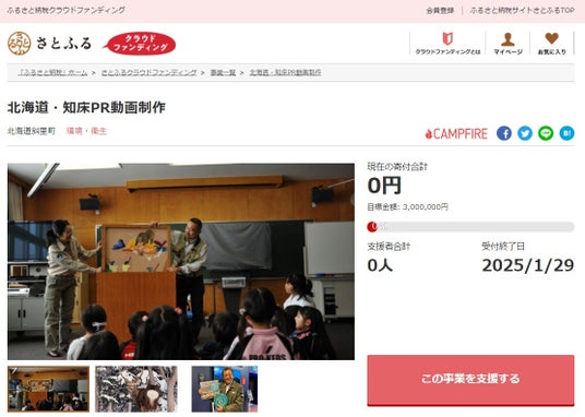 北海道斜里町とふるさと納税ポータルサイト「さとふる」を運営する株式会社さとふる(本社:東京都中央区、代表取締役社長 兼 CEO:藤井 宏明)は、「さとふるクラウドファンディング」にて、北海道斜里町における2事業の寄付受け付けを2024年11月1日より開始します。
