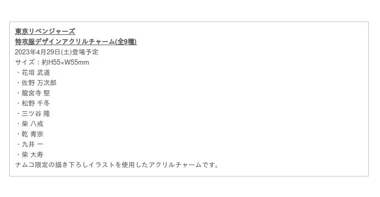 ■ナムコ限定TVアニメ「東京リベンジャーズ」の景品が登場!