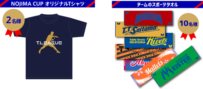 賞品:的中した方の中から抽選でTリーグオリジナルTシャツまたはチームスポーツタオルをプレゼントします。