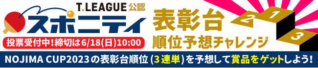 ■「Tリーグ NOJIMA CUP 2023」の表彰台順位予想チャレンジについて