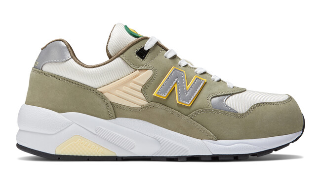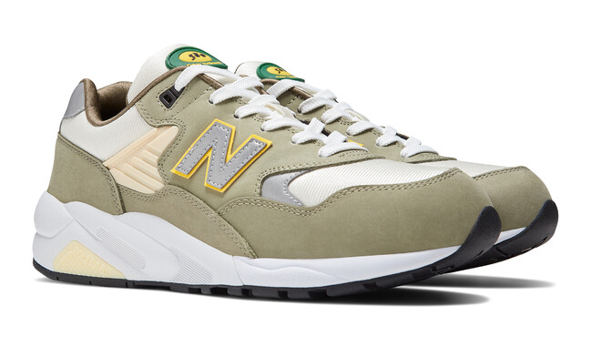 当時搭載されていた安定性をもたらす「ROLLBAR(ロールバー)」をミッドソールに搭載。アッパーはプレミアムなピッグスキンスエード/メッシュ素材で、今回のニューカラー2色は、過去に人気を博した「580」のカラーウェイを採用。ラストはニューバランスのスタンダードな「SL-1」ラストに変更され、過去の「580」よりスリムな印象に。