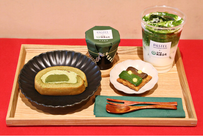 そしてこのたび、新緑の季節に合わせて、「パステル」と宇治茶専門店「祇園辻利」のコラボレーションが実現、「祇園辻利」の豊かな香りとまったりとした旨味・甘味が特徴の「宇治抹茶」、焙煎による高い香りと味わいが楽しめる「ほうじ茶」を使用した共同開発商品を新発売するにあたり、旗艦店「パステル 表参道店」を京都・祇園にある「祇園辻利 祇園本店」をイメージしたコラボレーション店舗として展開し、「パステル 表参道店」限定商品『祇園辻利の宇治抹茶使用 パステル ア・ラ・モード~宇治抹茶~』※1や、店内でも召し上がれる『抹茶ミルク』『ほうじ茶ミルク』、ドリンクとスイーツプレートをセットにした『コラボ茶寮セット』を新発売いたし ます。