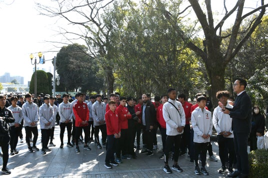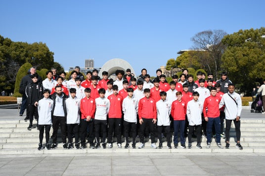大会2日目、U-17日本代表とU-17タジキスタン代表が一緒に平和学習を実施。広島平和記念資料館は、展示資料の入替などのために臨時閉鎖だったため、広島県サッカー協会のスタッフらが平和公園の碑巡りを実施。1945年8月6日にこの一帯でどのようなことが起きたのかを説明した。