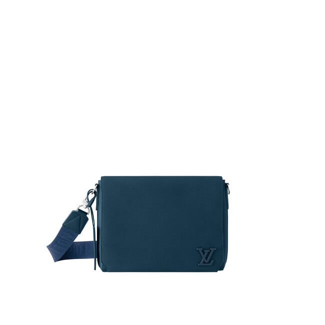 「アエログラム」コレクションならではのディテールを散りばめた「テイクオフ・メッセンジャー」。ミニマルなデザイン、統一感のある色使い、コーナー部分を斜めにカッティングしたフラップが特徴です。グレインレザーで仕立て、フロントにはトーン・オン・トーンのメタルで象ったLV イニシャルをあしらっています。「Louis Vuitton」シグネチャーを織り込んだ、取外し & 調節可能なテキスタイルストラップで、ショルダーキャリーでもクロスボディキャリーでも快適に楽しめます。