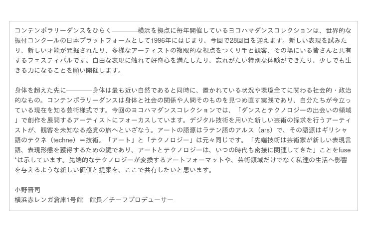 後援:横浜市文化観光局、新書館「ダンスマガジン」
