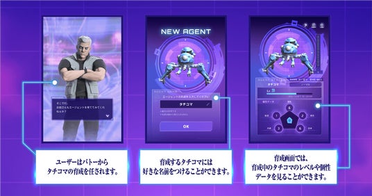 ユーザーは公安9課の新人となり、『攻殻機動隊』でお馴染みのキャラクター・バトーからタチコマの育成を任されるというストーリーに沿って、自分だけのタチコマを育てていきます。
