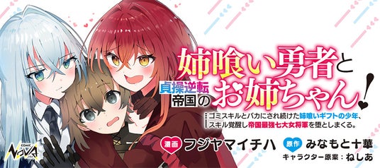 株式会社エディア(本社:東京都千代田区、代表取締役社長:賀島 義成)の子会社、株式会社一二三書房(本社:東京都千代田区、代表取締役社長:山崎 篤、以下:一二三書房)は、エンターテインメント小説レーベル『ブレイブ文庫』にて発売中の小説『姉喰い勇者と貞操逆転帝国のお姉ちゃん!~ゴミスキルとバカにされ続けた姉喰いギフトの少年、スキル覚醒し帝国最強七大女将軍を堕としまくる。~』のコミック版を一二三書房オリジナルコミックレーベル『コミックノヴァ』にて本日17時より連載開始することをお知らせいたします。