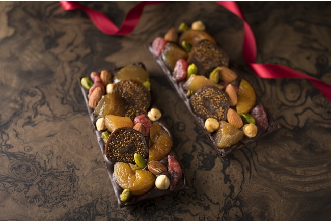ナッツを飾った、見た目にも華やかなタブレットショコラ。