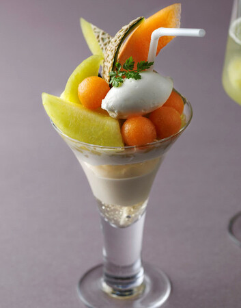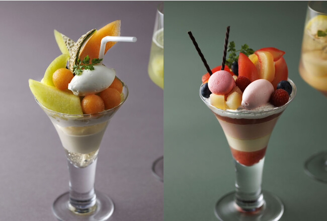 優雅なひとときを提供するロビーラウンジでは、旬のフルーツを使い、さまざまな味わい・食感とそれを活かす食材とのユニークな組み合わせで人気のシーズナルパフェを、定期的に販売しています。今年の夏は「メロン」と「桃」をテーマに暑い夏も爽やかに楽しめるスイーツに仕上げました。
