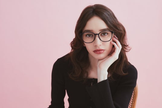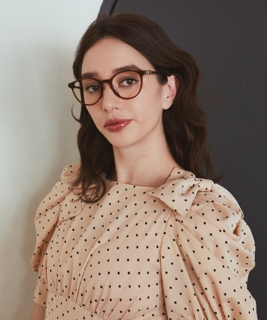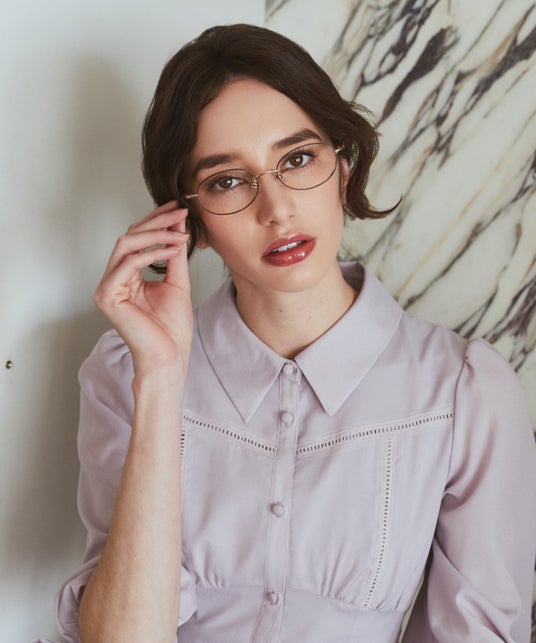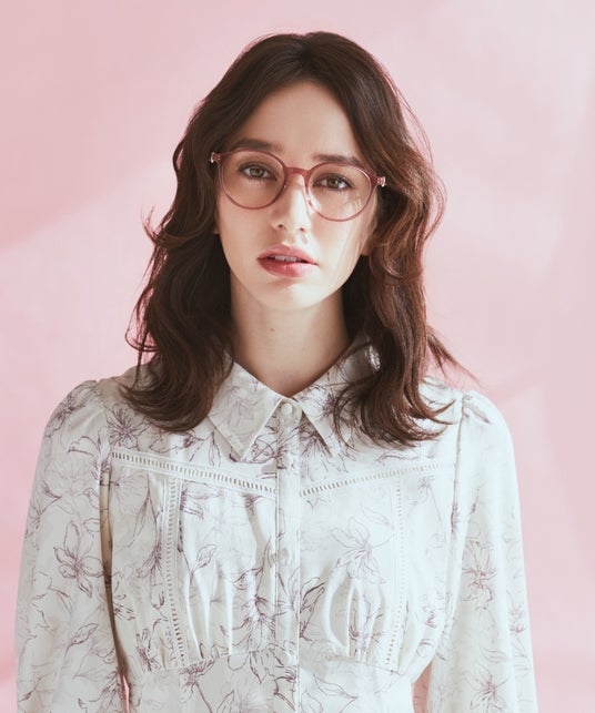 少しだけ目じりが上がったフォックスシェイプになっており、丸みのある形でも大人っぽい印象です。