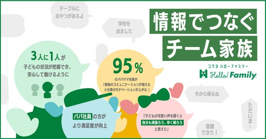 コクヨ株式会社(本社:大阪市/社長:黒田 英邦)は、次世代の家族コミュニケーションをサポートするブランド「Hello! Family. (ハローファミリー)」を活用した社内モニターを実施し、働き方や家族とのコミュニケーションの変化を検証しました。