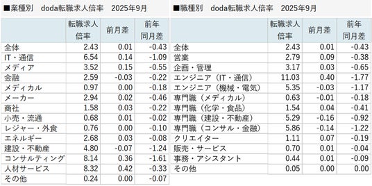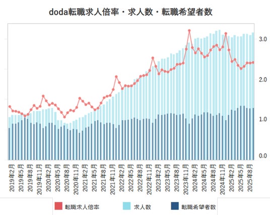 パーソルキャリア株式会社が運営する転職サービス「doda(デューダ)」(編集長:桜井 貴史)は、2025年9月の転職求人倍率をまとめた「doda転職求人倍率」を発表いたします。