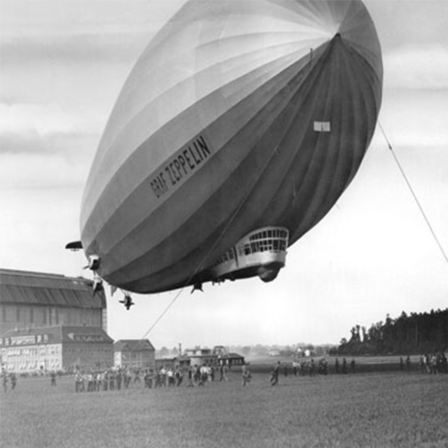 1900年ドイツ。フェルディナンド・フォン・ツェッペリン伯爵が開発した硬式飛行船。