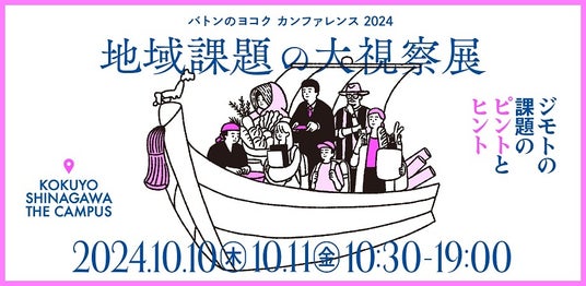コクヨ株式会社(本社:大阪市、社長:黒田 英邦)は、株式会社スマイルズ(本社:東京都目黒区、代表取締役社長:野崎 亙)と共催で、2024年10月10日(木)、11日(金)の2日間、地域課題を未来の価値につなげる「『バトンのヨコク カンファレンス 2024』地域課題の大視察展 ―ジモトの課題のピントとヒント 」を、コクヨ株式会社 品川オフィス「THE CAMPUS(ザ・キャンパス)」にて開催します。