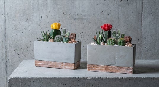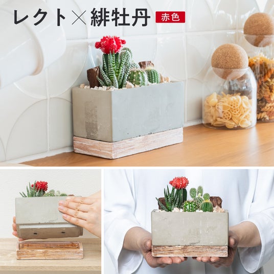 緋牡丹サボテンの寄せ植えをセメント鉢に。ミニマルで都会的なデザインが、一人暮らしの部屋にもすっとなじむインテリアグリーン。初心者でも育てやすく、ギフトにも選ばれる観葉植物を発売開始します。