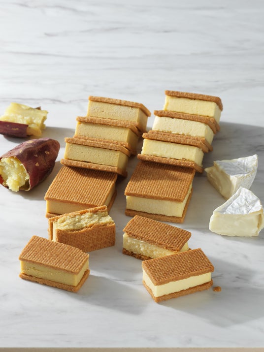 カマンベールチーズを使用したベイクドチーズケーキを、しっとりとしたサブレでサンドしました。より濃厚でコクのあるチーズの味を楽しめます。