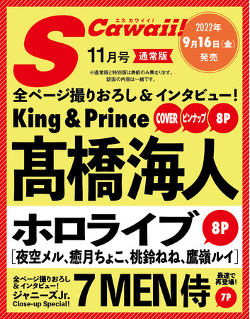 【通常版】には、10月にスタートするドラマ「ボーイフレンド降臨」に主演するKing & Princeの高橋海人が初めて単独で登場! 表紙&ピンナップ&巻頭8ページで大特集! もちろん完全撮りおろしです。