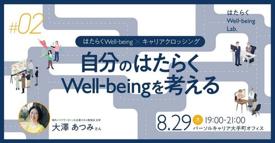 今回はその一環として、同じ環境に長く勤めている方々に気づきを与える「キャリアクロッシング」セミナーを主宰する大澤 あつみ氏と協業し、自身の“はたらくWell-being”について、参加者同士で学び、より深く考えてもらうためのワークショップ「はたらくWell-being×キャリアクロッシング」を開催することとしました。