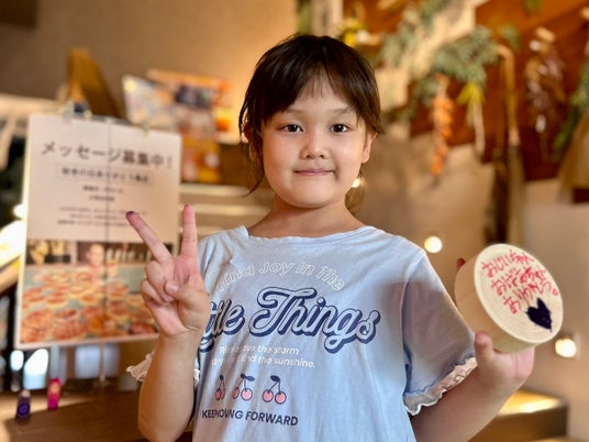 地域の子どもたちやお客さま、店舗スタッフが、おじいちゃん・おばあちゃんへの「ありがとう」の気持ちを記したヒノキの入浴木99個をおふろに浮かべます。