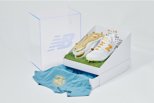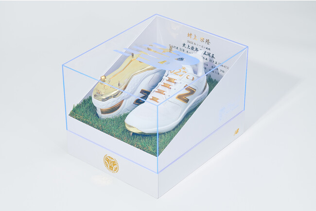 株式会社ニューバランスジャパン(本社:東京都千代田区、代表取締役社長:久保田伸一)は、TeamNBアスリートである東京ヤクルトスワローズ村上宗隆選手の偉業を祝して、スペシャルスパイク「L3000MM6」(非売品)と、三冠王の記念ロゴ入りのトレーニングアパレルを製作し、村上選手へ贈呈いたしました。村上選手が現在着用しているスパイク「L3000v5」の最新モデルであり、来期着用予定の新作「L3000v6」を村上選手の偉業を称えるデザインを随所に施して作成。ソール、Nロゴなどのポイントにはチャンピオンカラーであるゴールド、タンには刺繍で「MURAKAMI 2022」とあしらい、シューレースアクセサリーには村上選手が2022年に達成した「打率.318」「本塁打56」、「打点134」という大記録を、インソールには背番号「55」をデザインしたスペシャルモデルです。トレーニングアパレルには三冠王を祝した記念ロゴをデザインし、スパイクとともに野球場のフィールドをイメージしたスペシャルボックスに入れ、村上選手へ贈呈いたしました。ニューバランスは今年の村上選手の偉業を称えるとともに、今後も引き続き村上選手をサポートしてまいります。