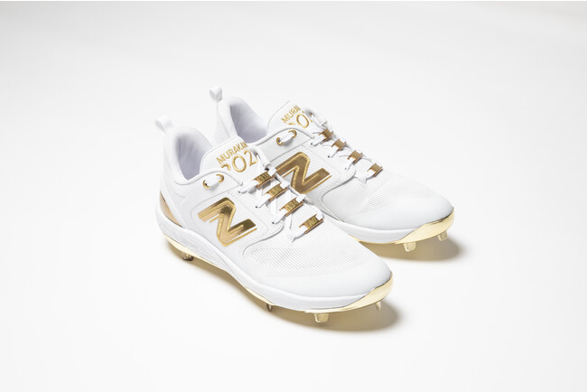 今回村上選手へ贈呈した「L3000MM6」は、ニューバランスのメタルスパイクシリーズの最新モデル(※)。履き心地の良さにこだわり、ミッドソールプラットフォームFresh Foam X(フレッシュフォーム エックス)をフルレングスで搭載し、高いクッション性、履き心地の良さを提供しています。メタルスパイクアウトソールはフィールドで優れたトラクションを発揮し、TPUヒールクリップはニューバランスの伝統的なライフスタイルモデルからインスピレーションを得てデザインされています。アッパーのメッシュ素材は柔らかさと耐久性を兼ね備えた"SYNEX PU COATED MESH"を採用。どんな環境でも対応できるTPU STUDSと屈曲部をオープンにしたことでストレスフリーな一歩目を可能にします。
