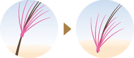 1本1本の自髪に、毛材を結び付けて増毛することで、気になる部分をさりげなく自然に増やします。自髪に合わせて、毛材の太さを選ぶことも可能で、2本/4本/6本の3種類の部材をご用意しています。『ナチュラルアップ』と『ナチュラルアップα』は結着時の結び方が異なります。