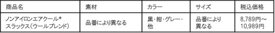 ■ノンアイロンエアクール(R)スラックス(ウールブレンド)表地には高通気でサラッとしたドライタッチな風合いの素材を使用。裏地にはメッシュ素材を使用することでムレにくくべたつきにくいため、快適にお過ごしいただけます。また、ウエスト裏の消臭パイピングが気になる臭いも軽減します。ご自宅で洗えていつでも清潔にご着用いただくことができます。干してもシワになりにくいノンアイロンタイプで、センタープリーツ加工によりきちんと感も持続いたします。