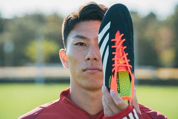 「ゴールを奪うためのスパイク」という部分は、自分にぴったりのスパイクだなと感じました。ドリブルを行う際に必要となるスピードや、引いてきた相手に対して放つミドルシュートなど、自分が得意とするプレーを手助けしてくれる要素がこの新しいプレデターには詰まっています。このスパイクを履いてプレーするのが楽しみです。