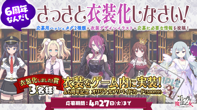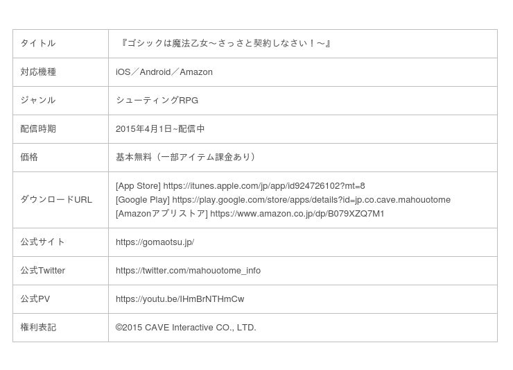 株式会社ケイブ(本社:東京都目黒区、代表取締役社長:秋田英好、JASDAQ コード:3760)が配信中のシューティングゲームアプリ『ゴシックは魔法乙女~さっさと契約しなさい!~』(『ごまおつ』)は、2021年4月1日(木)にサービス開始から6周年を迎えます。