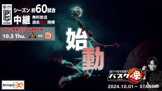無料のBS放送局 「BSJapanext」(読み:ビーエスジャパネクスト)では、「りそなグループ B.LEAGUE 2024-25 シーズン」の開幕にあわせ、Bリーグ中継と応援生番組をスタートします。