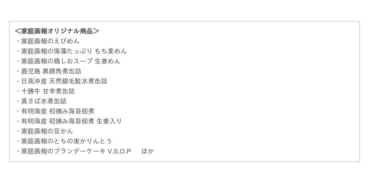 家庭画報オリジナル食品を中心に、「少量」「小分け」で展開。