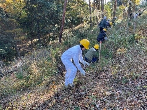 静岡県立森林公園は、アカマツ林を主体とした自然の景観として県民に親しまれ、環境省からも「生物多様性保全上重要な里地里山」として選定されるなど、希少生物の生息地としても評価されています。しかし、2011年の東日本大震災の影響で、松くい虫防除剤の空中散布用のヘリコプターが確保できず、松くい虫の被害が激増。そのため、園内の広範囲に純林として存在していたアカマツ林が、10年前の約1/3程度にまで減少しています。こうした状況から当社では、2019年に同地のアカマツ林再生活動への協力を民間企業として初めて開始しました。本活動において、静岡県から多年にわたる環境の緑化、自然保護活動が評価され、当社は2024年9月に、「令和6年度 しずおか未来の森サポーター 知事褒賞」を受賞いたしました。