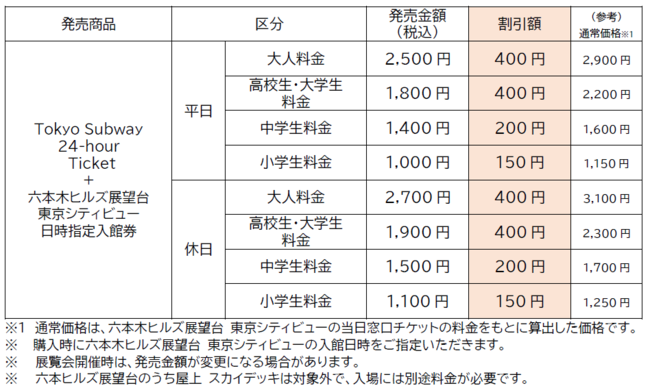 旅行者向け企画乗車券「Tokyo Subway Ticket」と観光施設入場券のセット発売詳細