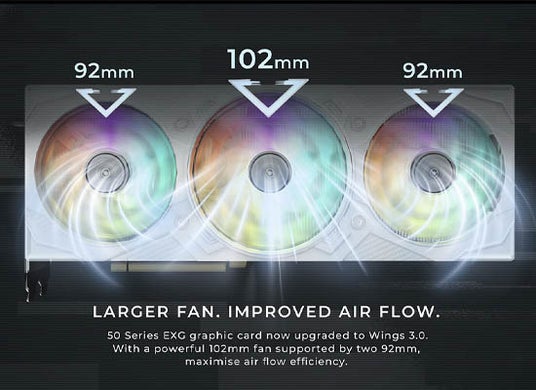 - 102mm x1、92mm x2の大型3連ファンによる強力な風量・風圧でヒートシンクから効率的に放熱します。