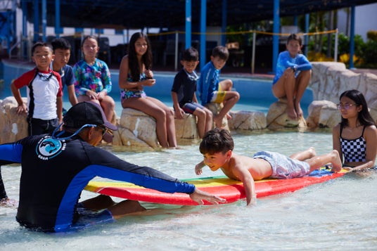 サーフィンプログラムは、ISA認定コーチであり、グアムやフィリピンのナショナルコーチの経験があるJoe(ジョー)が担当します。Joeは、グアムの子供たちにサーフィンの楽しさを知ってもらいたいという想いから、このウォーターパークで地元の子ども向けのサーフィンレッスンを15年以上続けています。この度、リゾナーレグアムに宿泊するお客様にもサーフィンに触れてほしいという想いで、「初めてのサーフィン」プログラムを期間限定で開催することにしました。