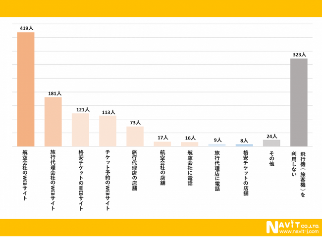 飛行機を予約する方法は、「航空会社のWEBサイト」が最多