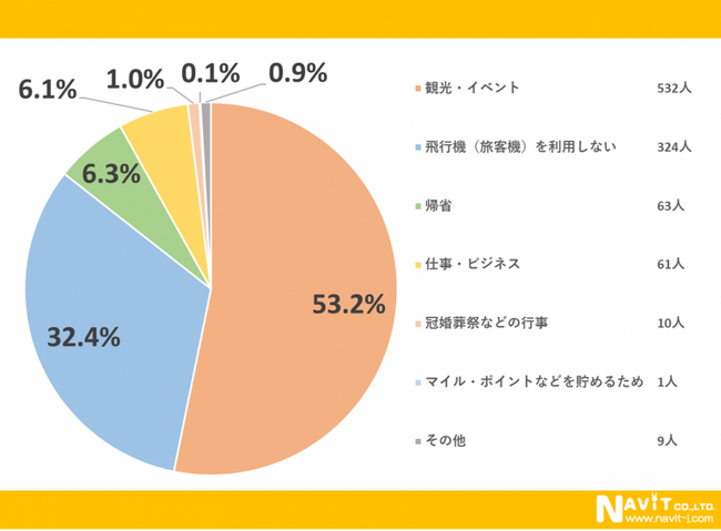 飛行機に乗る目的は、「観光・イベント」が半数以上