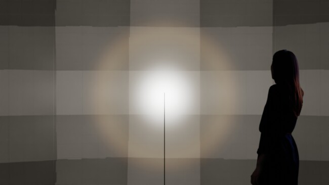 例えば、海外で発表され注目を集めている作品例に、物理的には何もないはずの空間に光の球体が浮かんで見えるというものがあります。今、目に見えている世界がそこに存在しているとは限らないということ、つまり見えている世界とは、それを見ている者の認知の中にだけに存在しているということを鑑賞者に気づかせてくれる作品です。