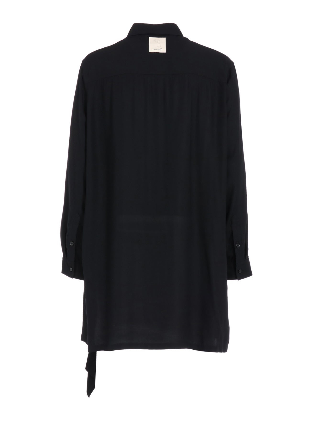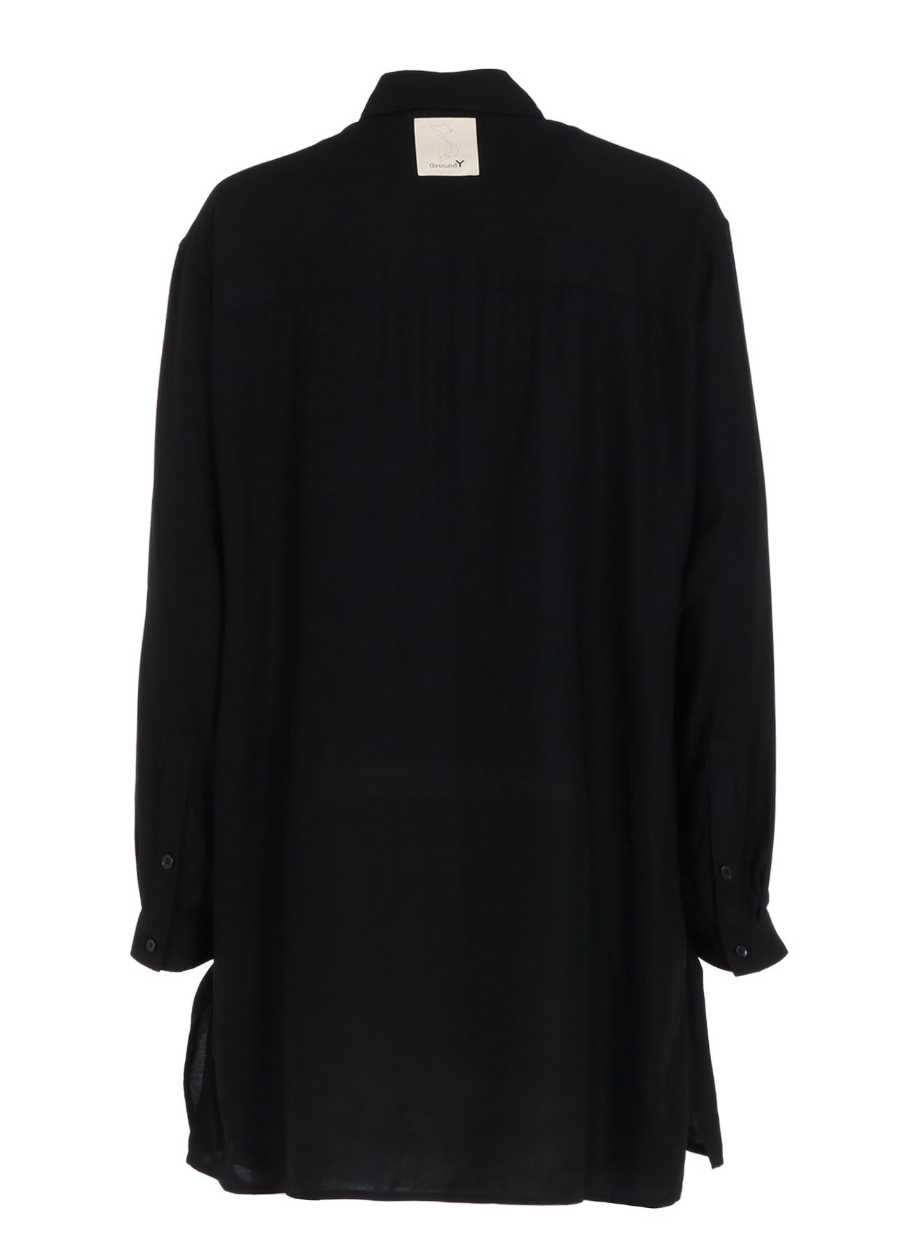 本アイテムは、日本画や墨絵から着想を得た“和”の美意識を基に、カラスをはじめとする5種類のモチーフを大胆に描いた一着です。ボディには、Ground Y 2025年春夏コレクションより始動した新プロジェクト「Beyond Borders」の〈RAYON TWILL LEFT COLLAR DOUBLE-LAYERED SHIRT〉ならびに〈RAYON TWILL LEFT FRONT CUT-OUT SHIRT〉を採用。ゆったりとしたシルエットで、レーヨンを使用した軽やかな生地は涼しげな印象を与えます。