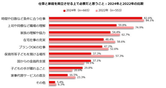 4.仕事と家庭を両立させる上で必要だと思うこと:2024年と2022年の比較