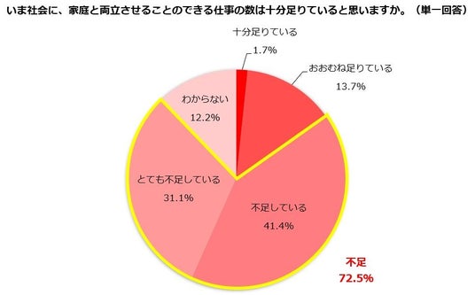 1.家庭と両立させることのできる仕事の数「不足している」72.5%